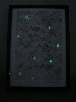 eau-forte et sérigraphie avec encre phosphorescente